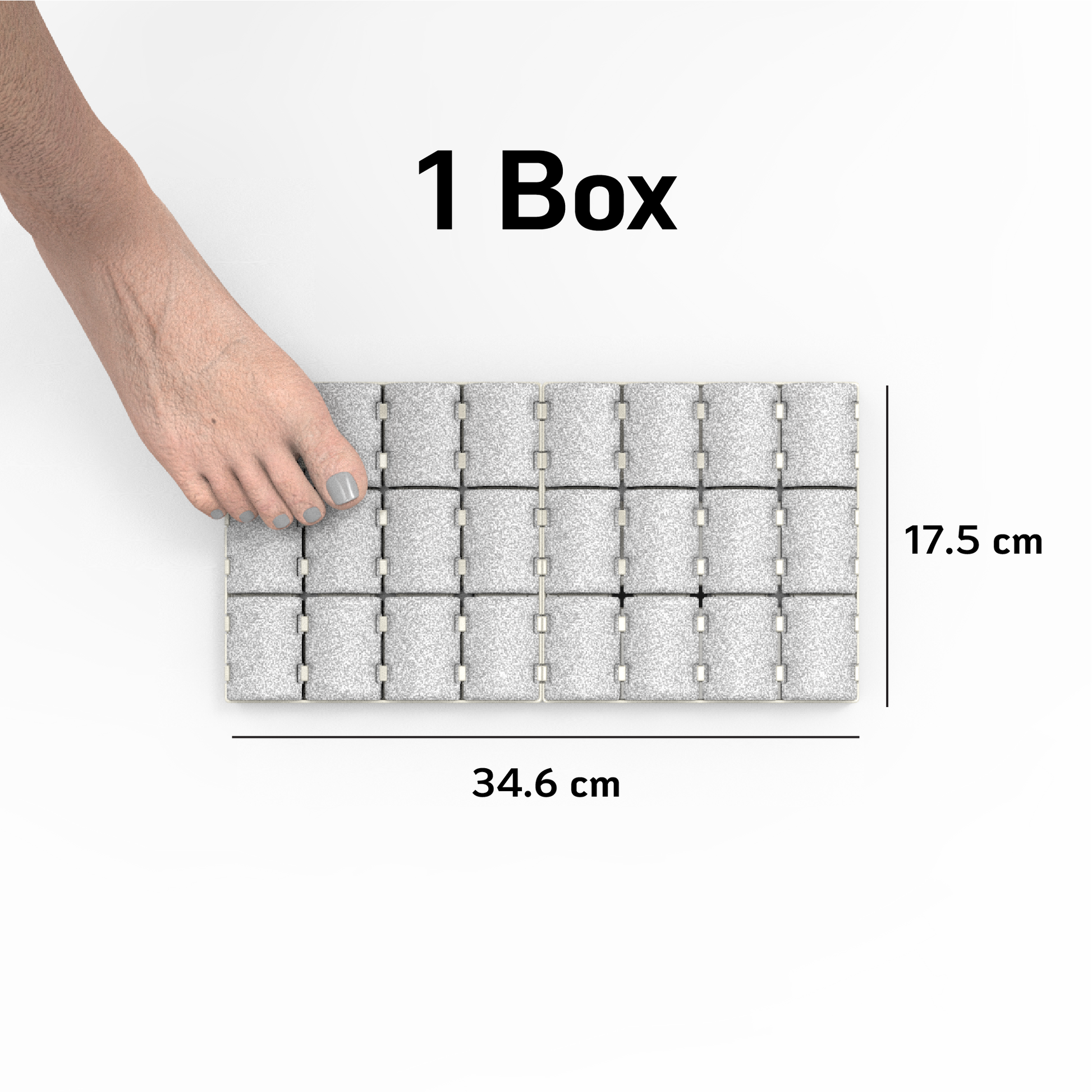Each box includes 2 modules, each measuring 173mm by 175mm. We recommend purchasing a minimum of 3 boxes, totaling 6 modules, and increasing the quantity as needed. These modules are ideal for placement at bathroom or toilet entrances, effectively maintaining dry floors to prevent slips and falls.