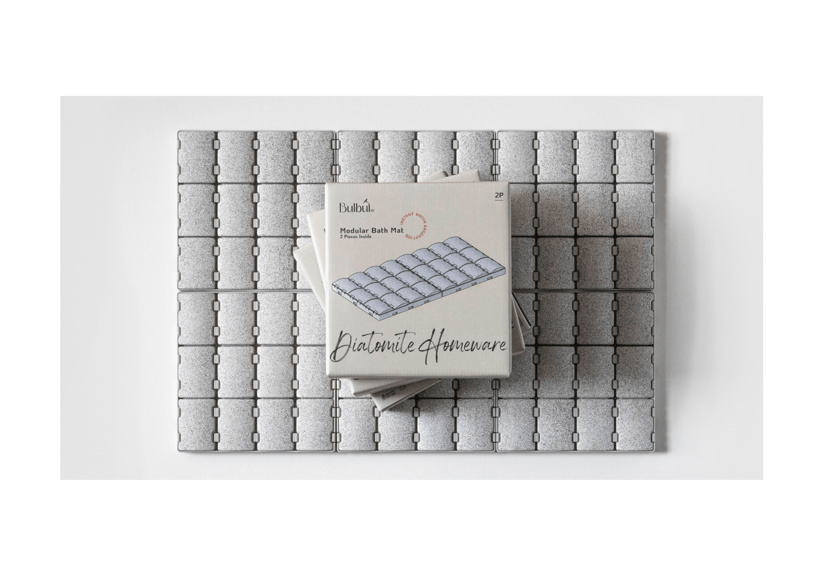 Place Bulbul’s Diatomite Modular Bath Mat around bathrooms, toilets and kitchens to instantly absorb moisture from wet feet. The product may appear powdery out of the box due to the natural composition of the materials. Gently wipe it clean with a damp cloth before use. Using force to wipe may cause abrasions. The product should be kept dry; do not wash before use. Mold may grow if the product is left in a wet place for long periods of time.
